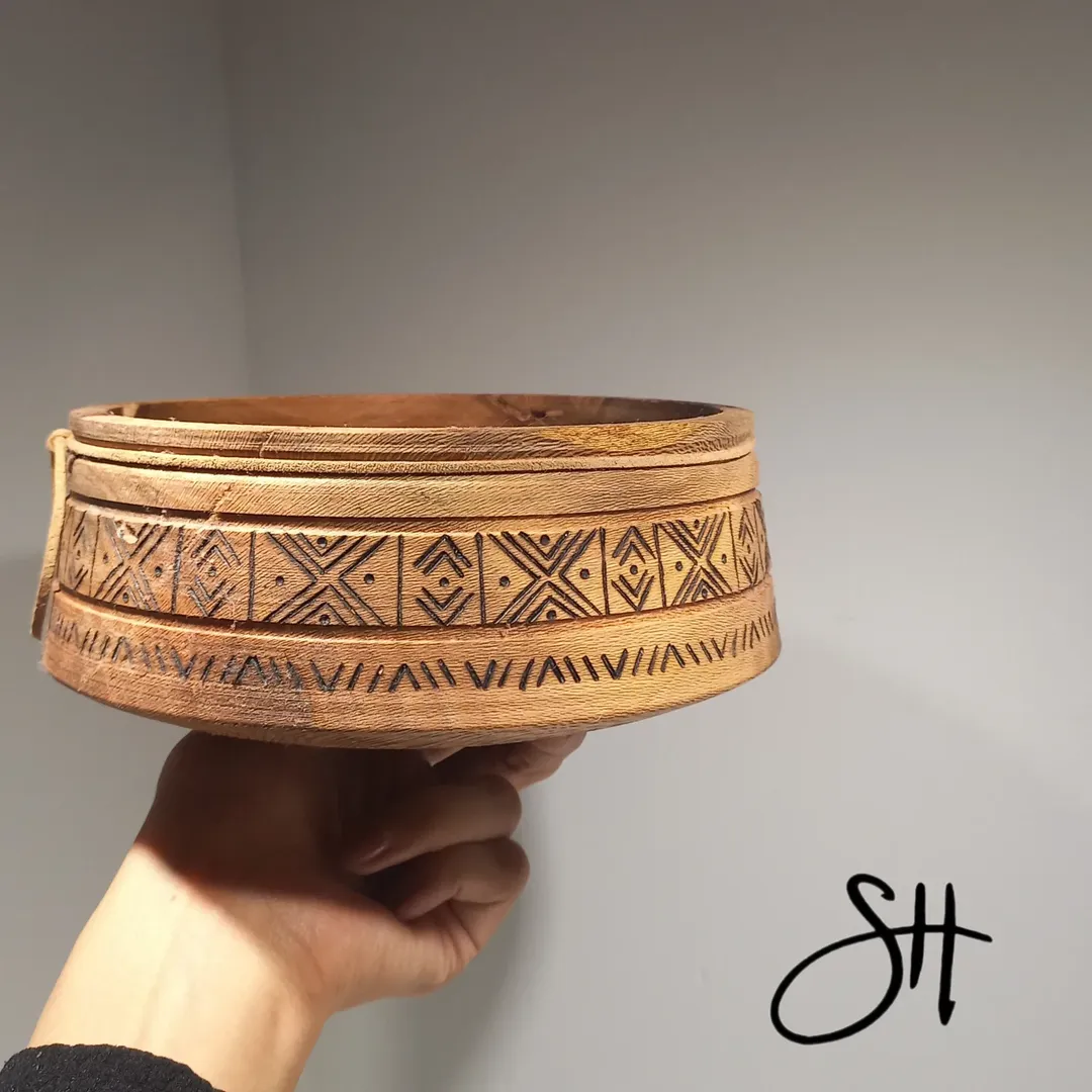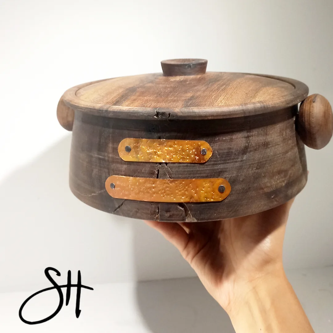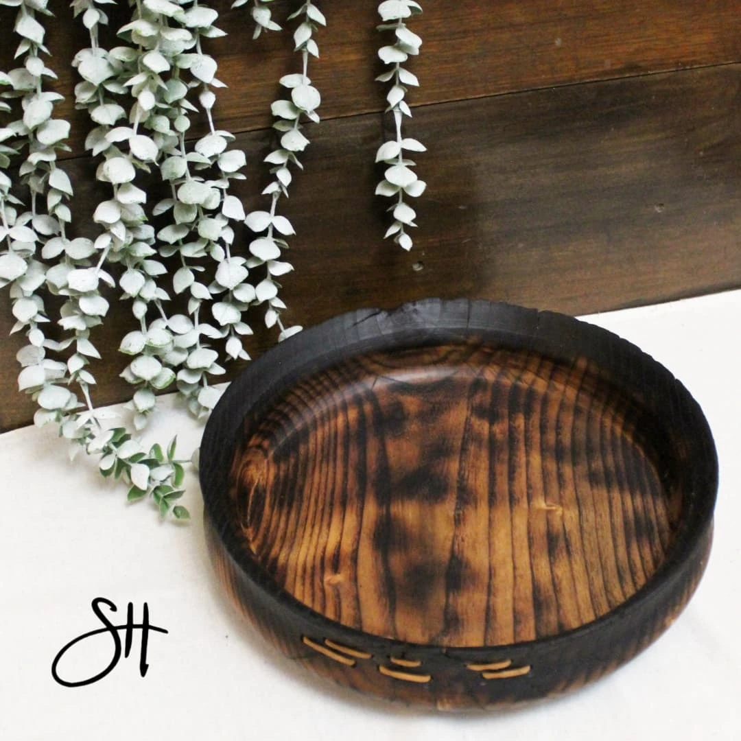 ظرف کهنه کاری چوب اقاقیا قطر ۳۰ ارتفاع ۹