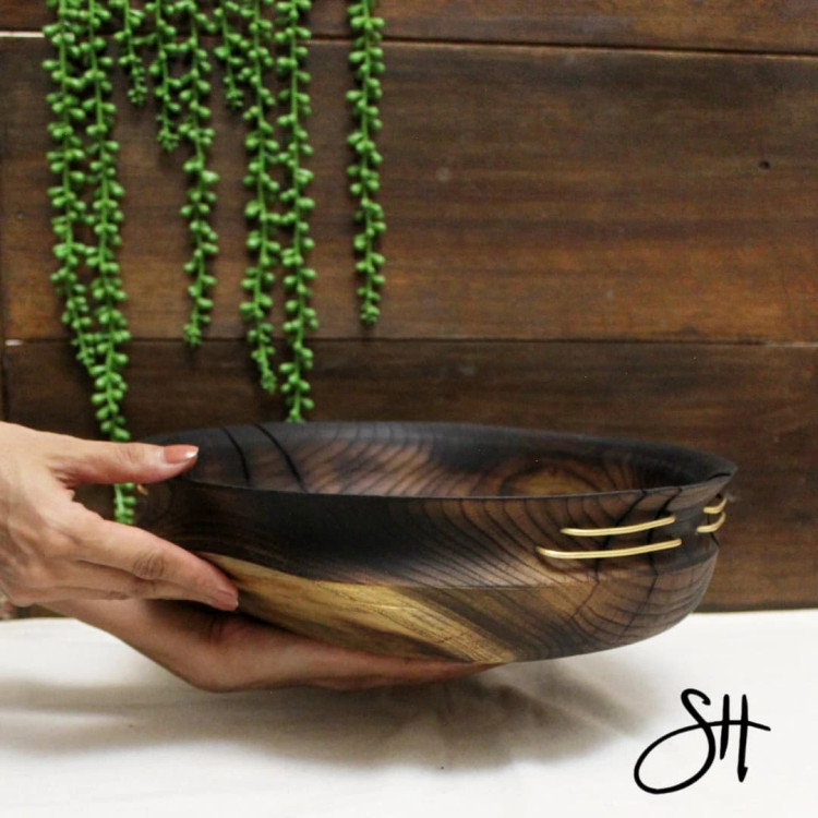ظرفی چوبی بسیار زیبا برای میوه، با طراحی کهنه کاری.