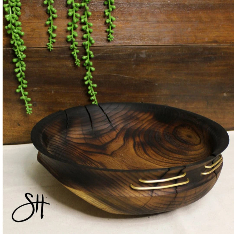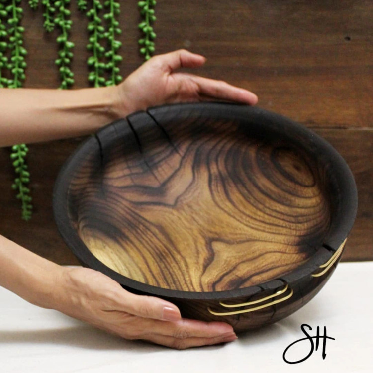 ظرف کهنه کاری چوب اقاقیا قطر ۳۰ ارتفاع ۹