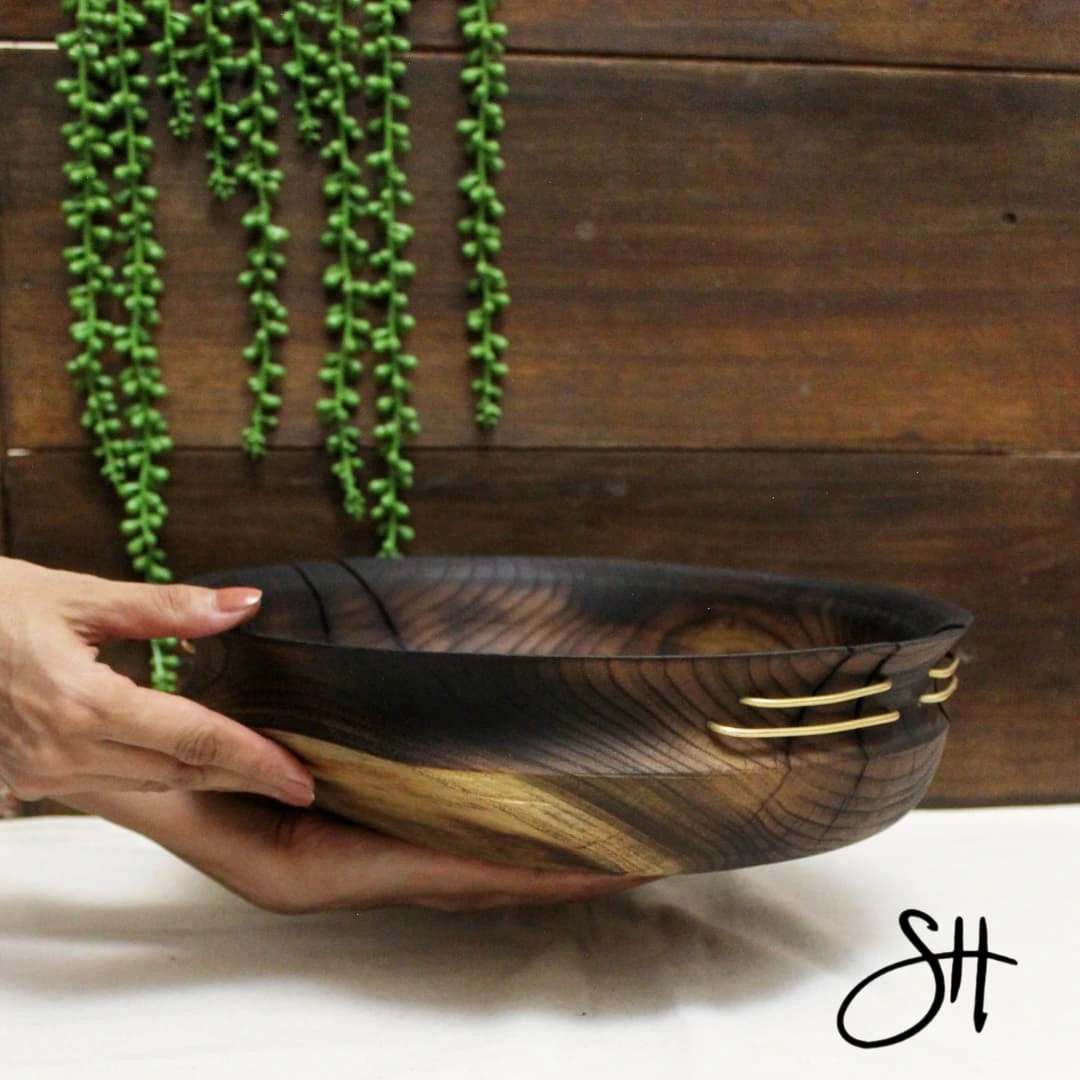 ظرفی چوبی بسیار زیبا برای میوه، با طراحی کهنه کاری.