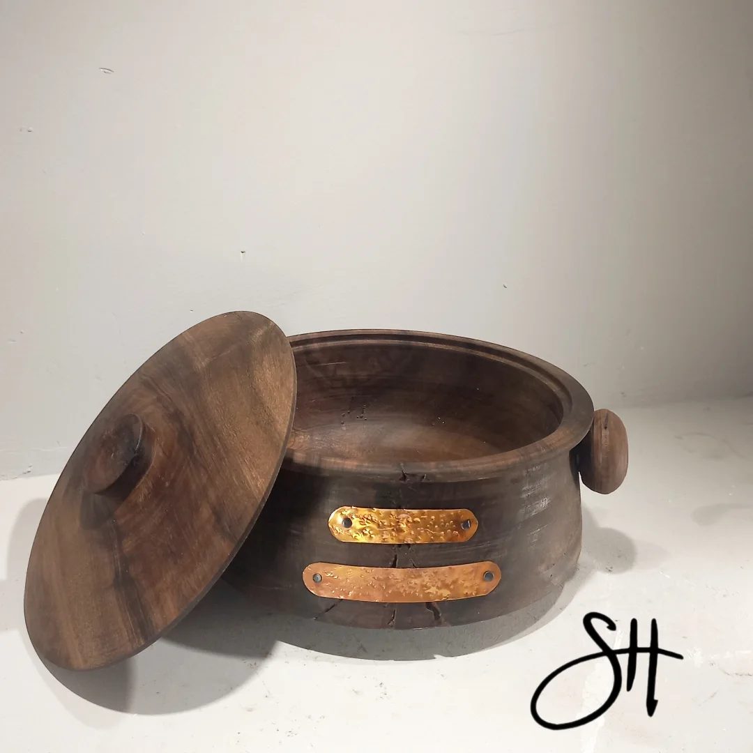 ظرف مدل سنتی همراه با کهنه کاری چوب، مناسب آجیل و شکلات مخصوصا آجیل و خشکبار شب یلدا. قطر ۲۰